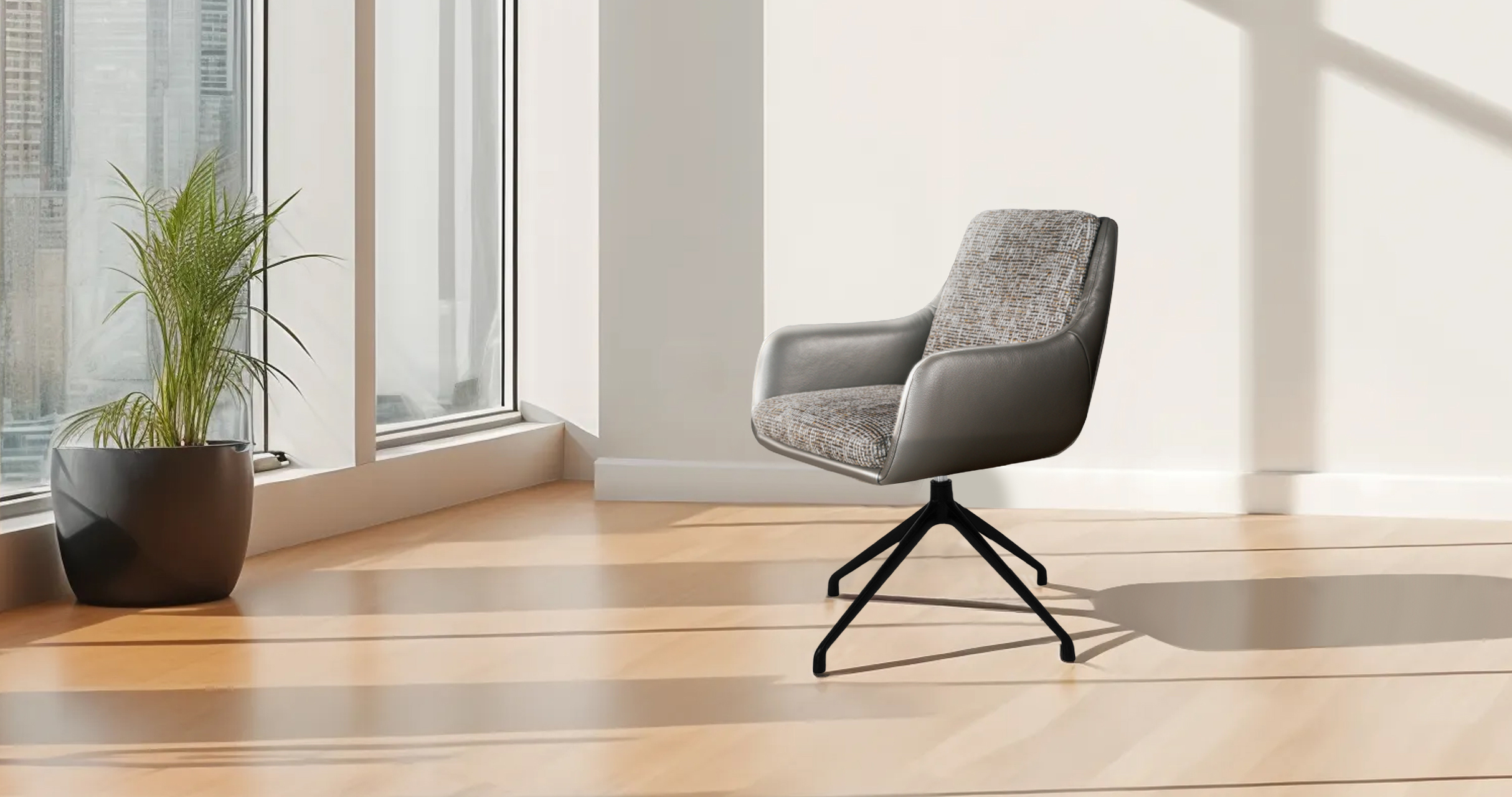 Эта модель небольших размеров оснащена поворотным механизмом, который позволяет пользователям легко садиться без необходимости передвигать его. Благодаря мягким изгибам спинки кресло словно заключает Вас в свои объятия. Детали кресла-стула, доступные в тканевом и кожаном исполнении, становятся акцентными элементами и могут быть персонализированы, чтобы удачно оформить любое помещение, будь то офис, кабинет или обеденная зона.