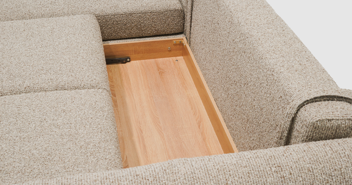 Каждый элемент Клаб продуман до мелочей, чтобы дарить не просто комфорт, а эмоциональное наслаждение от отдыха. Благодаря гибким боковинам может меняться и комфорт. Диван умеет быть классическим оазисом покоя или приглашающим к расслабленному, вальяжному отдыху. С практической стороны также следует отметить просторное ровное спальное место, встроенные вместительные места для хранения с ламинированным покрытием, которые помогут упорядочить пространство, скрывая мелочи и создавая атмосферу порядка и чистоты. А высокие опоры которые не только визуально освобождают пространство, придавая интерьеру лёгкость и воздушность, но и делают уборку максимально удобной — достаточно просто протереть пол, не перемещая диван. Диван Клаб — способен стать сердцем любого пространства, где изысканность встречается с функциональностью.