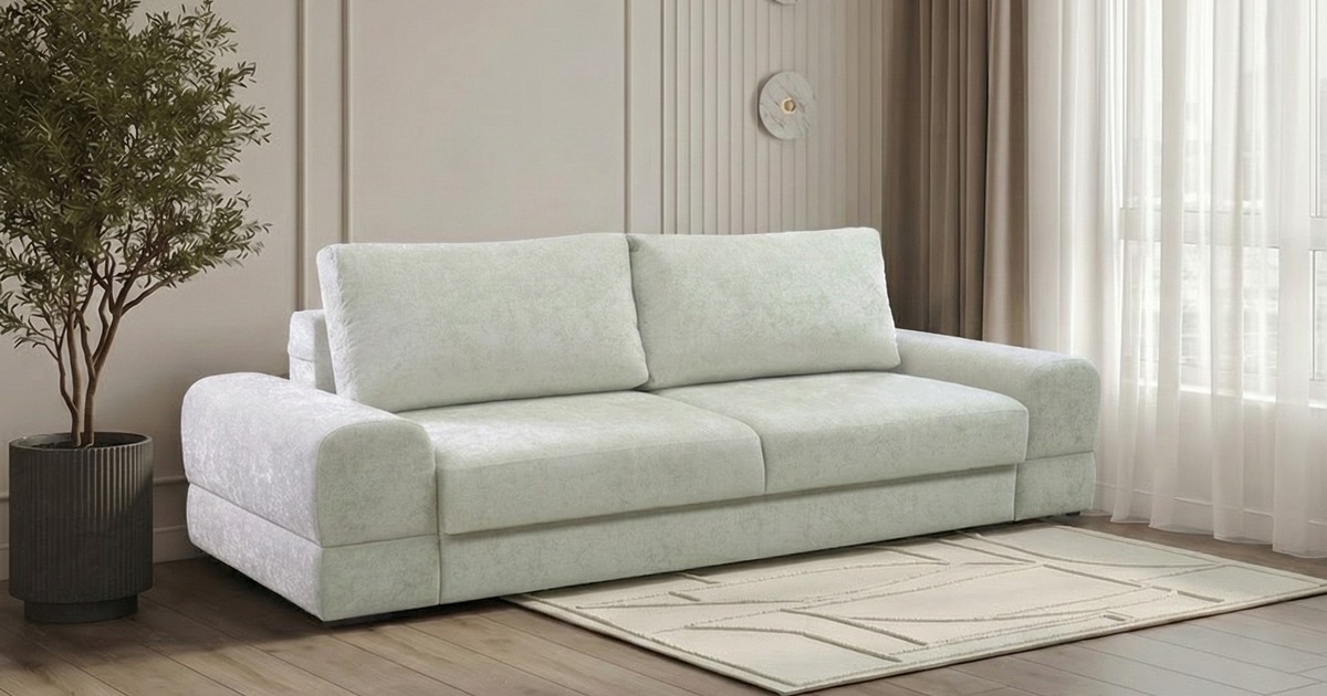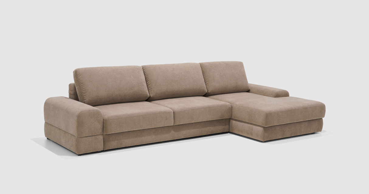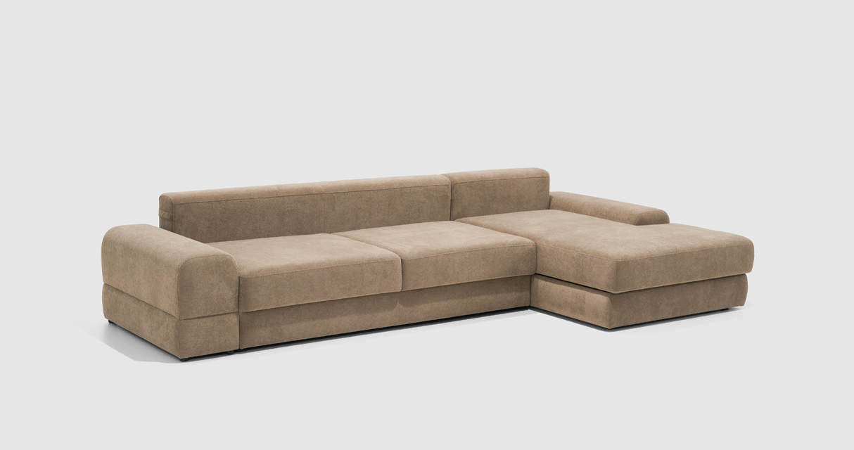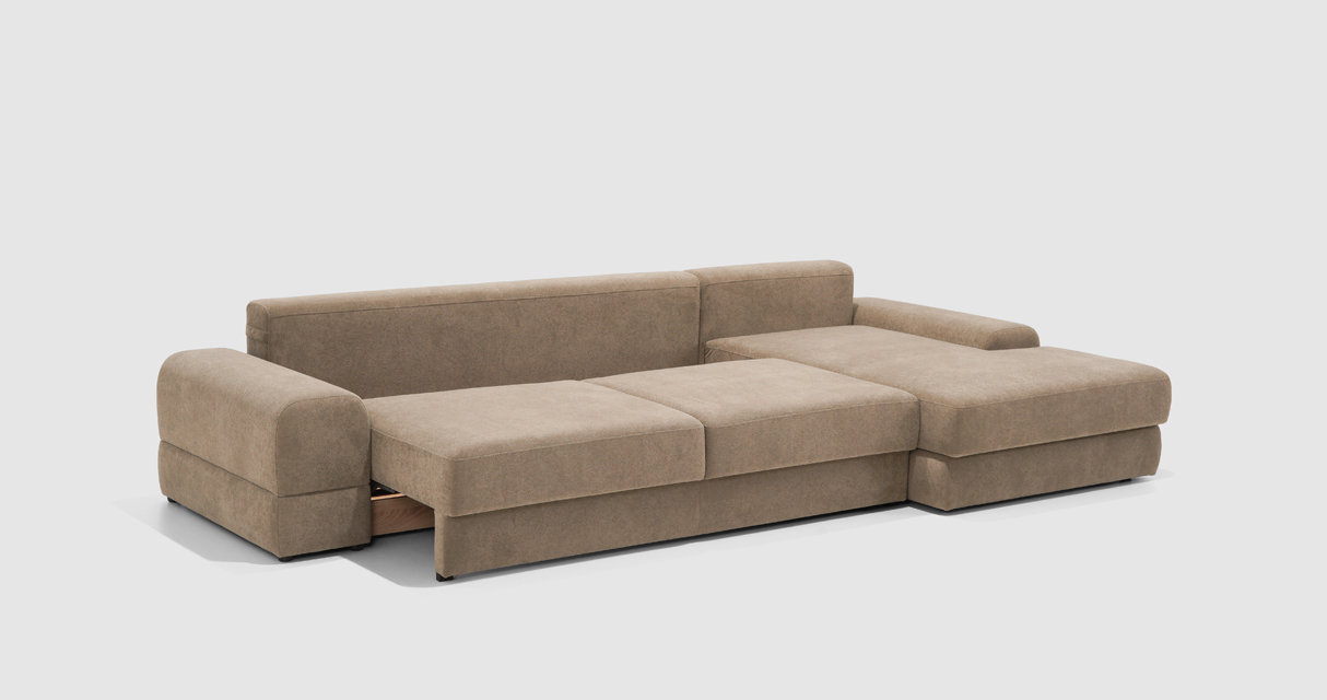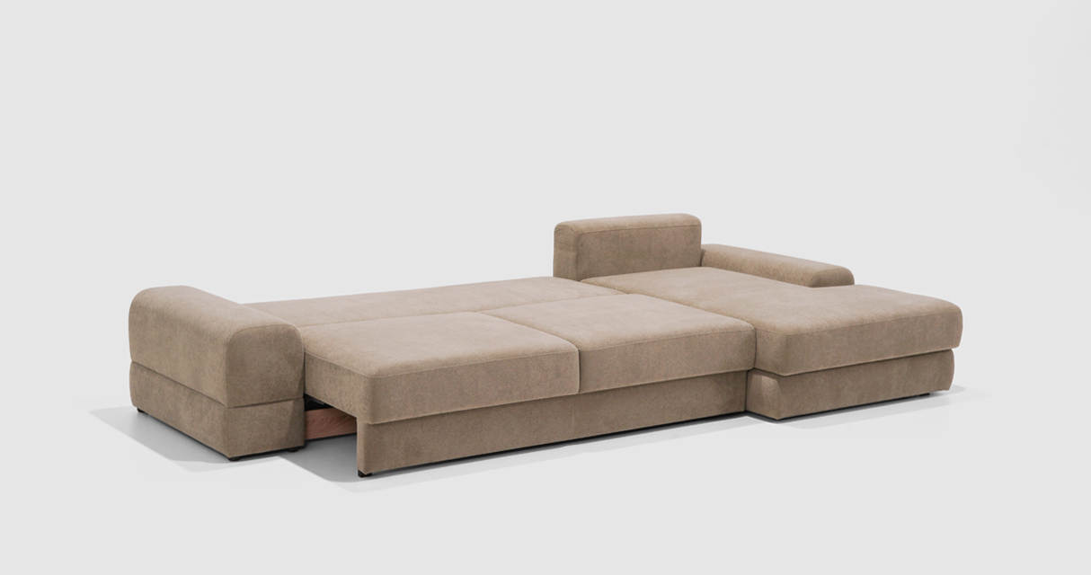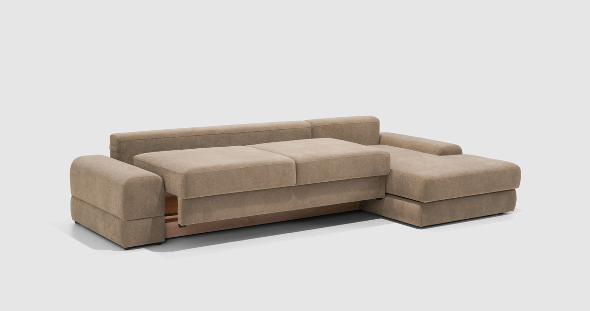 Минималистичный модульный диван с комфортной посадкой и большим выбором вариантов спального места.