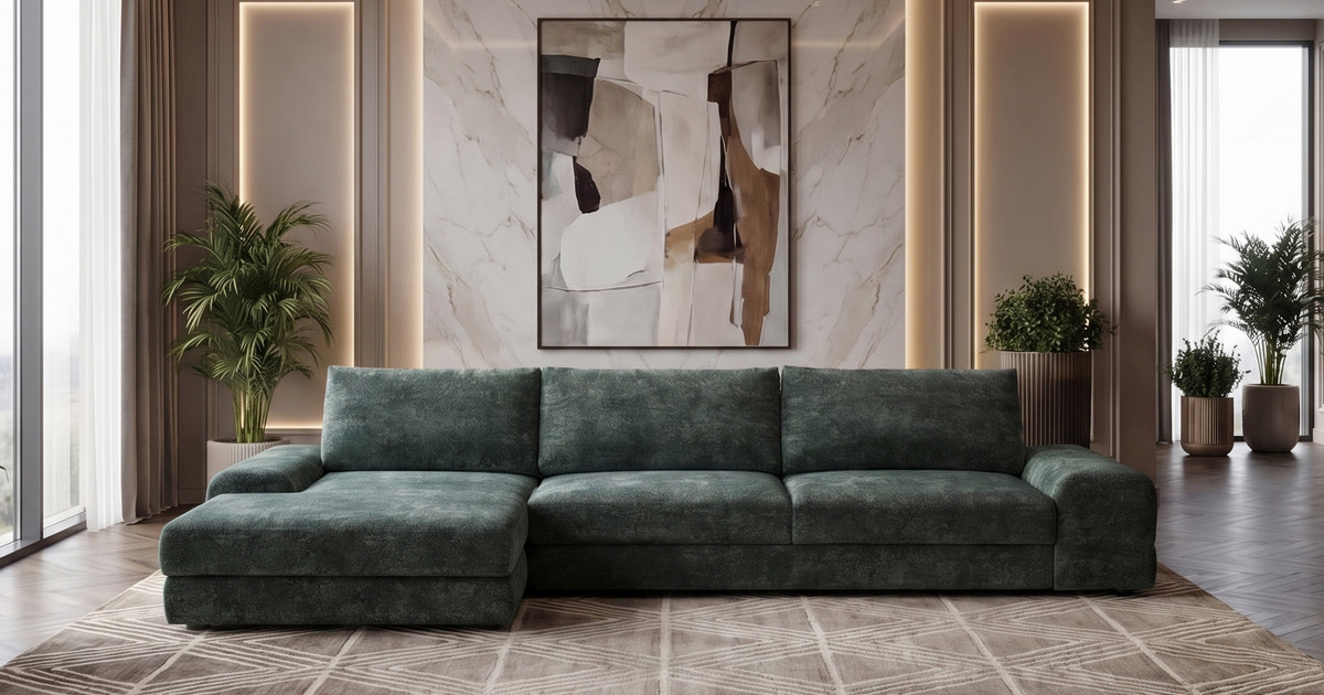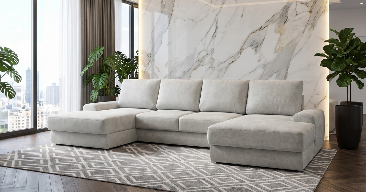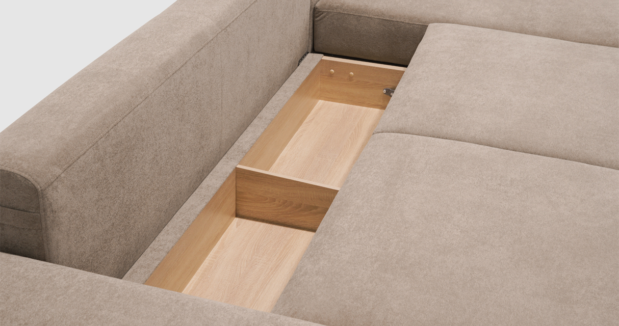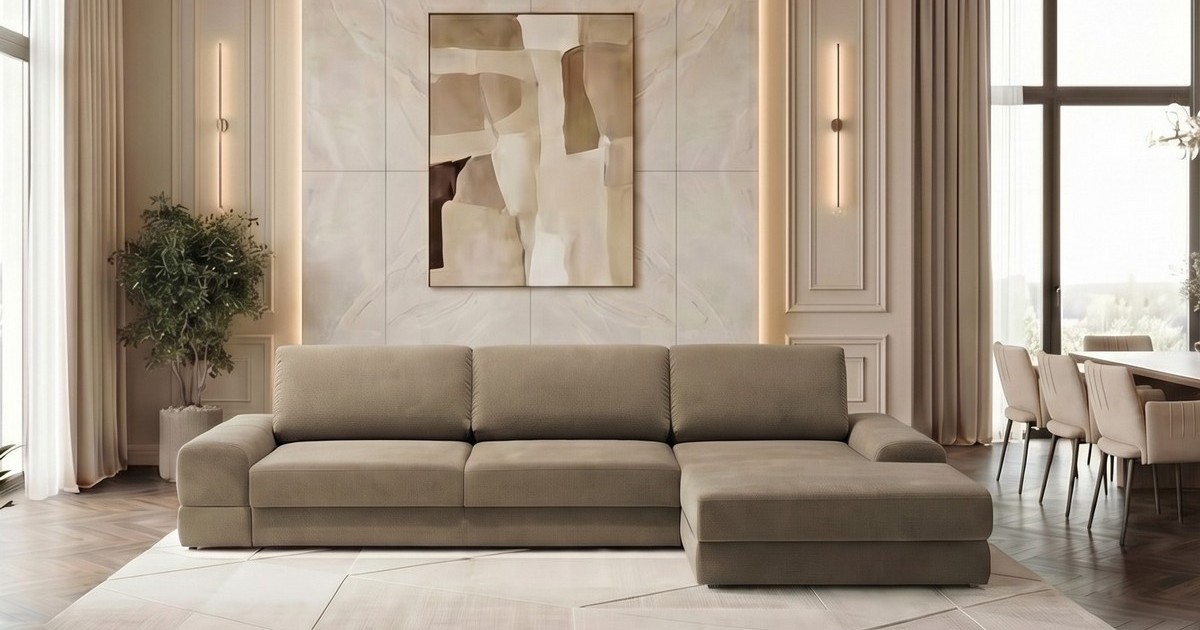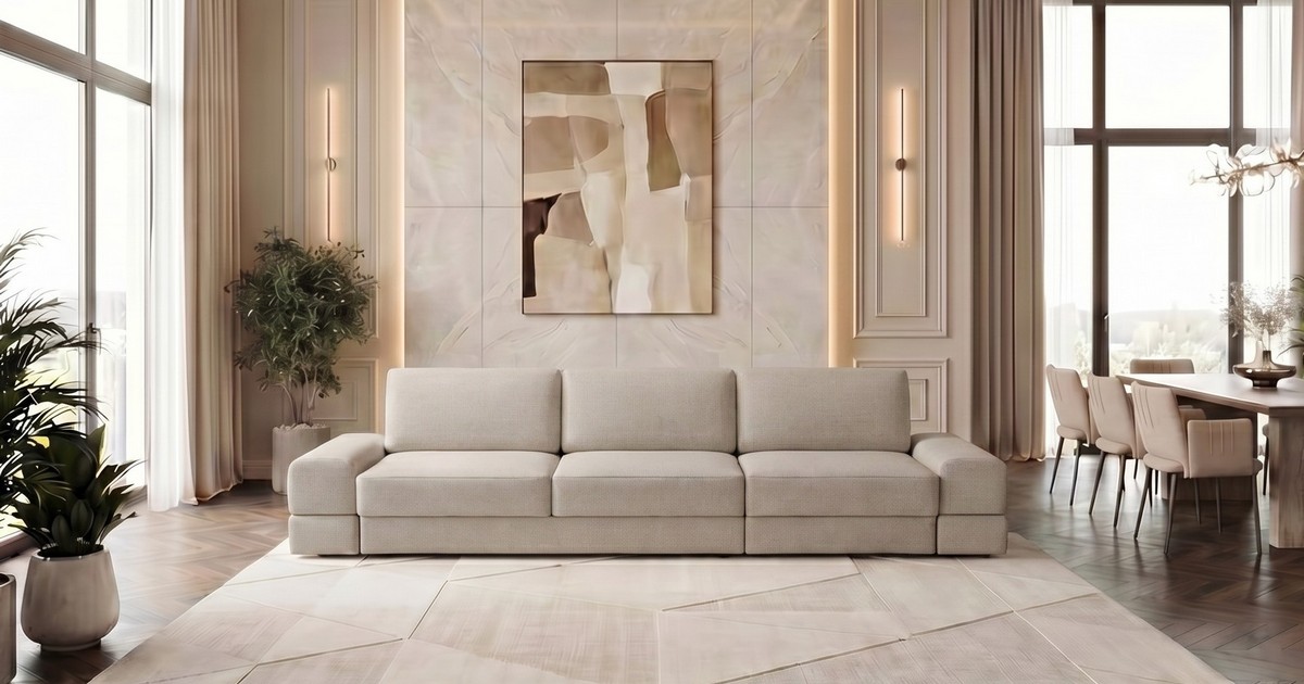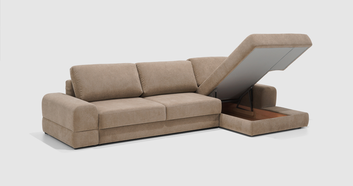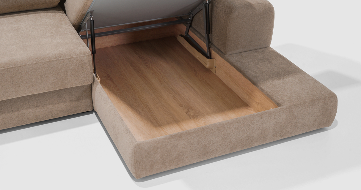 Минималистичный модульный диван с комфортной посадкой и большим выбором вариантов спального места.