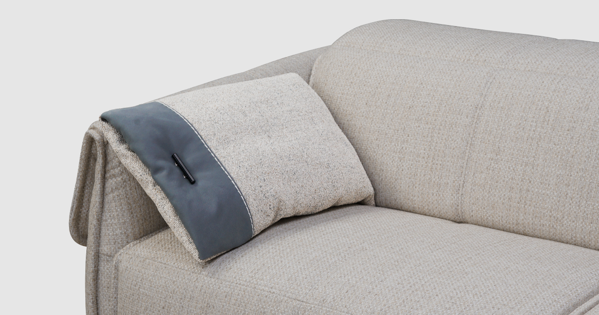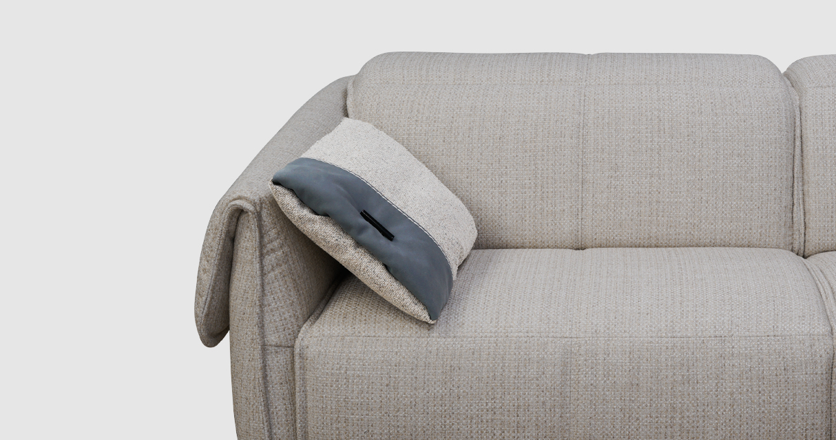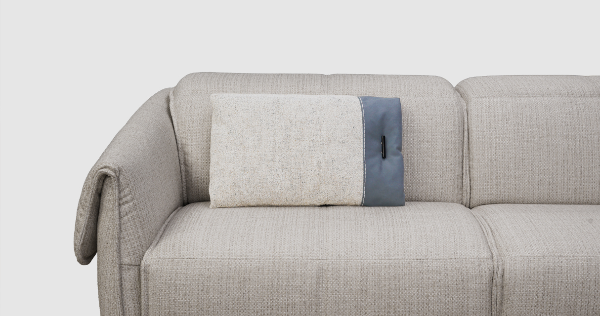 Но истинное очарование Венто заключается не только в удобстве. Каждая деталь подушки тщательно продумана, чтобы вызвать восхищение и стать центром внимания. Кожаная вставка аккуратно прошита по краю нарочито толстой тесьмой — это не просто отделка, это смелое дизайнерское решение, подчеркивающее оригинальность этого аксессуара. Особым акцентом служит оригинальная цилиндрическая пуговица — деталь, которая обращает на себя внимание. Она словно приглашает прикоснуться к ней, испытать эмоции эстетического восхищения и насладиться этим моментом.